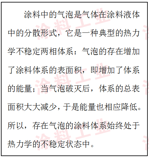 在涂料生产过程中,气泡作为干扰因素出现,使涂料产品在应用时产生表面缺陷,既有损外观,也会影响涂膜的防腐性和耐候性。气泡通常是涂膜附着力不足的体现,对于防腐涂料而言,它往往是其防腐能力不足的最先外观表征。