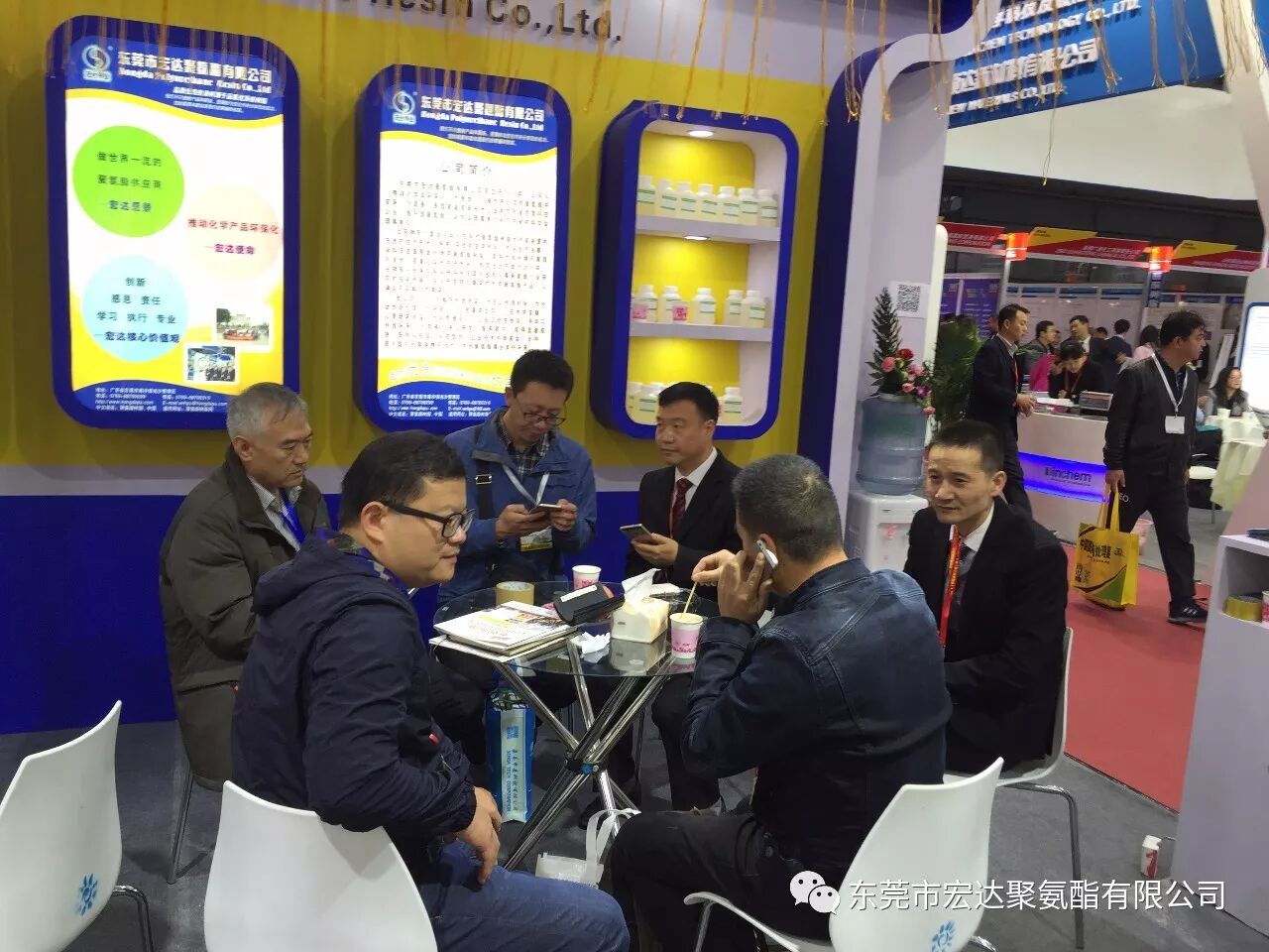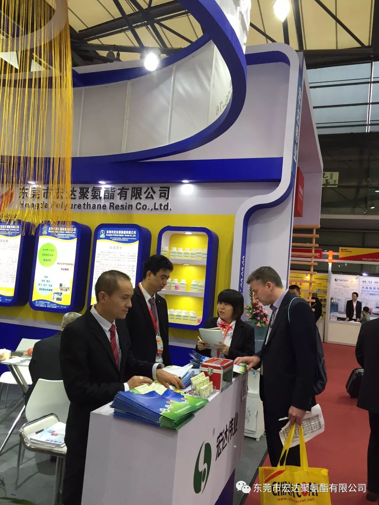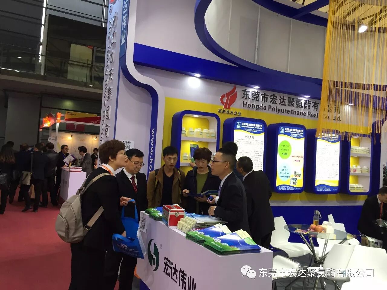 哦,你说你看到了老外的身影......各位看官,别着急,此次的展会,不管是国内还是国外似乎特别钟情《宏达聚氨酯》的水性皮革、鞋材类树脂、水性防水尼龙树脂、水性自消光哑膜树脂及油性凹版里印油墨树脂、油性防水尼龙树脂等产品。