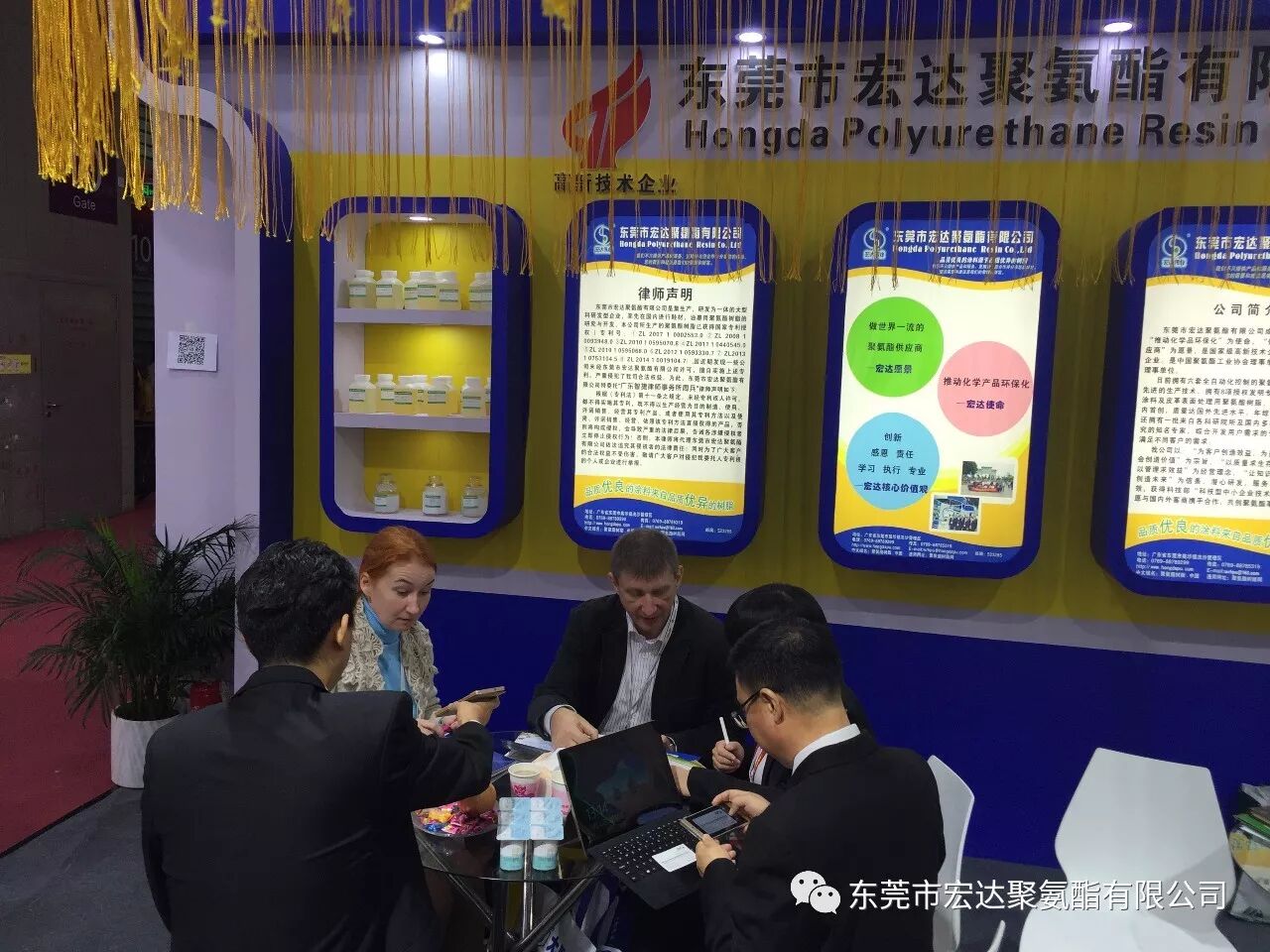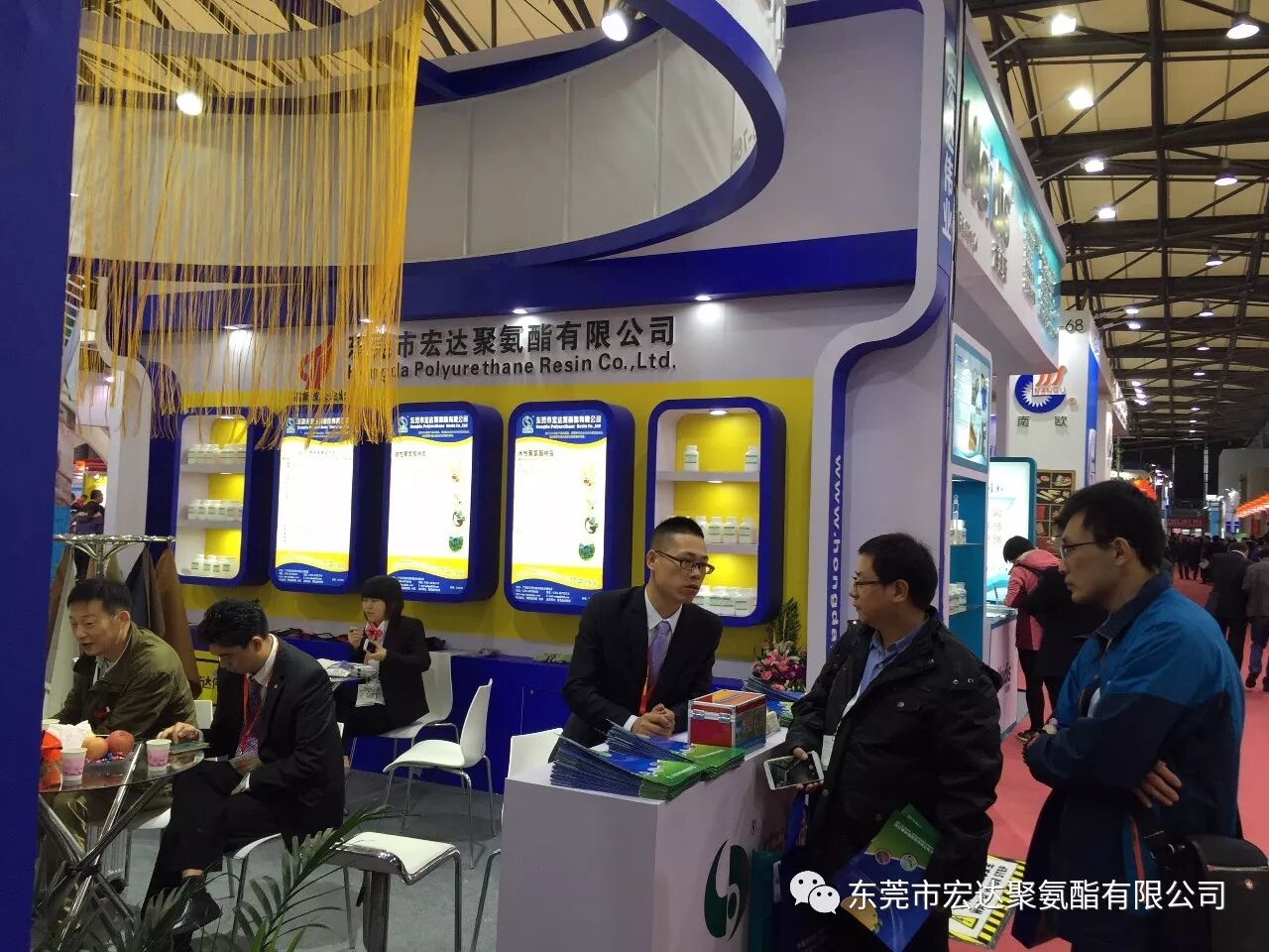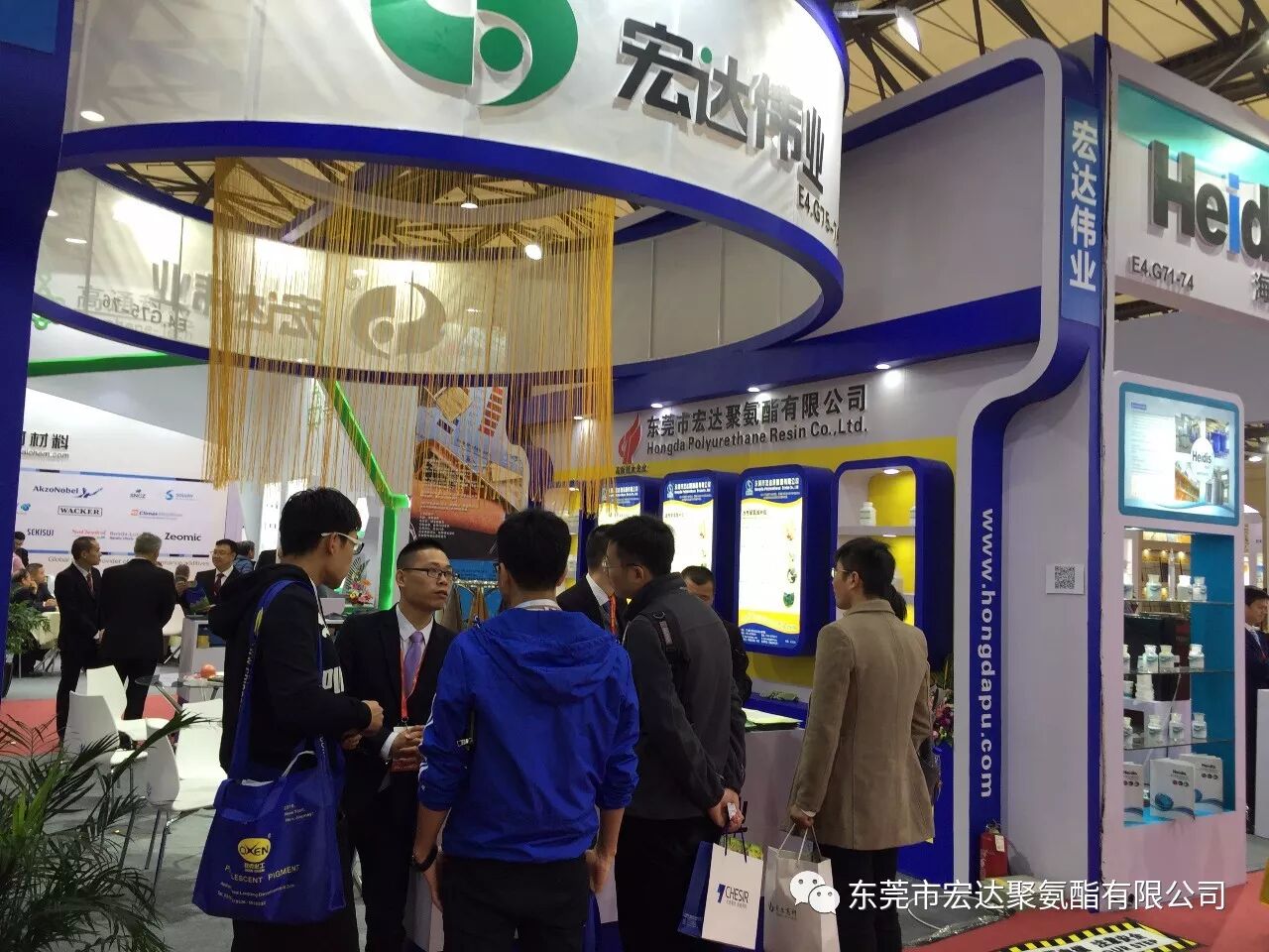哦,你说你看到了老外的身影......各位看官,别着急,此次的展会,不管是国内还是国外似乎特别钟情《宏达聚氨酯》的水性皮革、鞋材类树脂、水性防水尼龙树脂、水性自消光哑膜树脂及油性凹版里印油墨树脂、油性防水尼龙树脂等产品。
