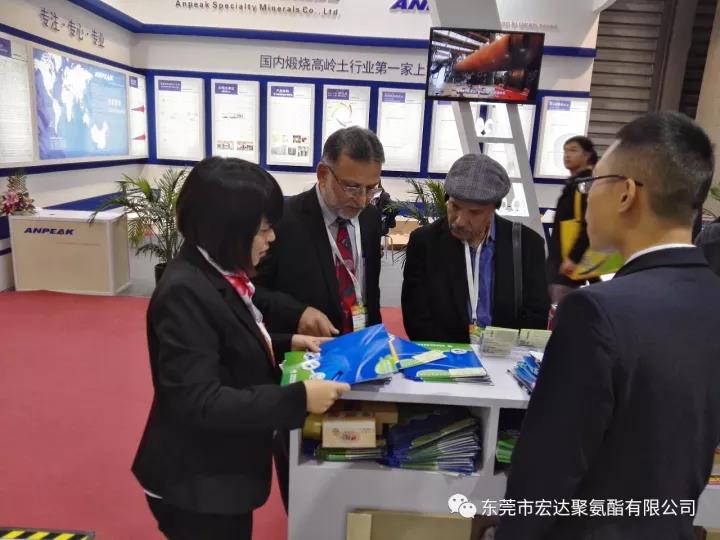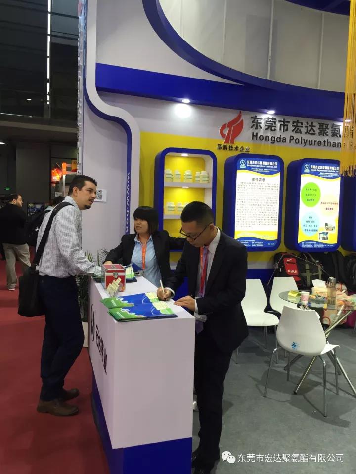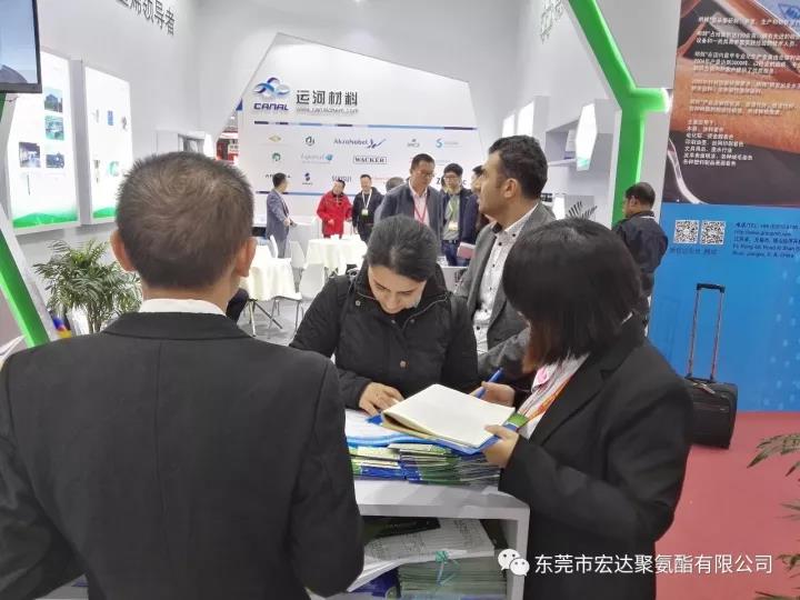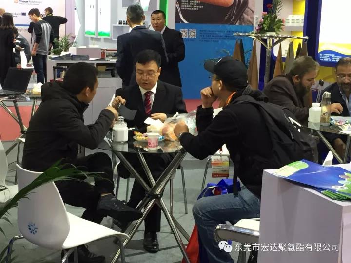 宏达聚氨酯产品在此次展会中获得了良好的口碑,在活动现场得到了很多客户的青睐,有些客户甚至是慕名而来! 尽管是展会的最后一天,但仍有不少的客户前来展位咨询产品情况,令宏达人应接不暇!