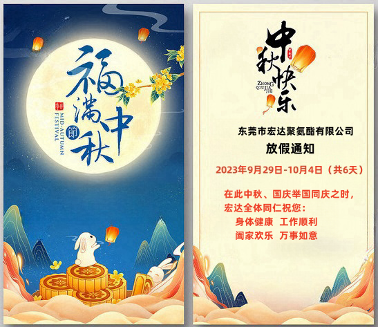 东莞宏达聚氨酯有限公司中秋.国庆假期安排如下:
