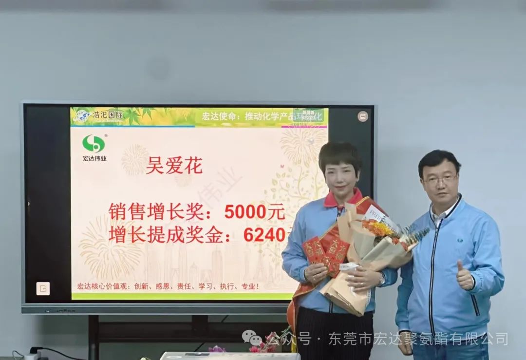 2023年感谢所有尊贵客户们的支持和关照,宏达在技术和生产上都得以成长,销售业绩也有所上升。宏达也借此机会表彰了几位特别付出、努力的优秀业务人员: